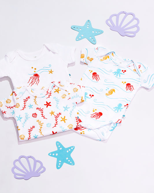 SEA WORLD - Half Sleeve - Organic Baby Romper - Set of 3