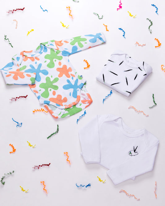 ART SPLASH - Full Sleeve - Organic Baby Romper - Set of 3