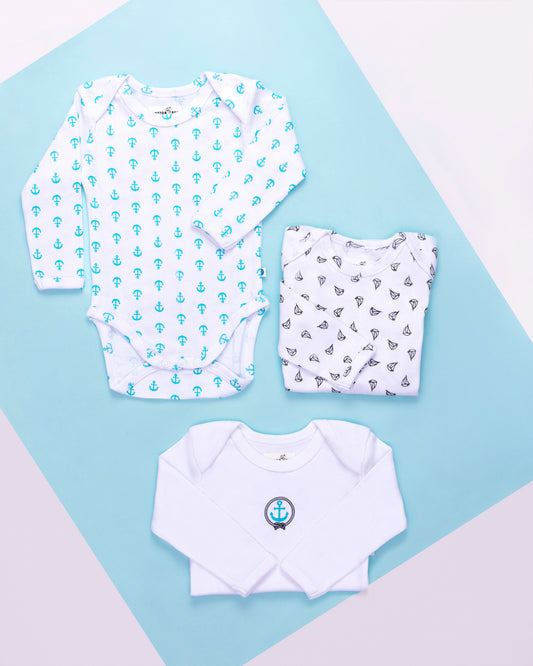 ANCHOR - Full Sleeve - Organic Baby Cotton Romper - Set of 3