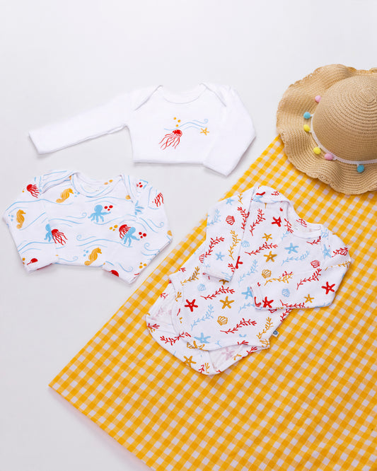 SEA WORLD - Full Sleeve - Organic Baby Romper - Set of 3