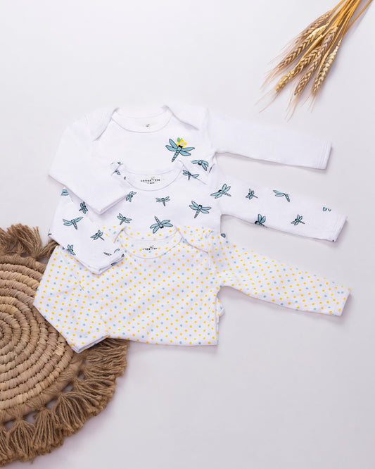 DRAGONFLY - Full Sleeve - Organic Baby Romper - Set of 3