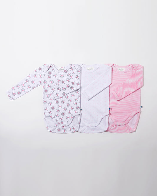 HEARTS - Full sleeve - Organic Baby Romper - Set of 3