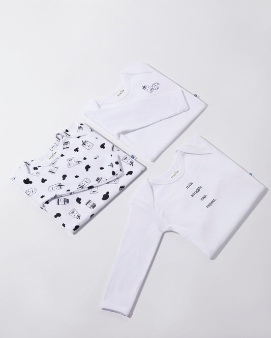 MILK - Full sleeve - Organic Baby Romper - Set of 3