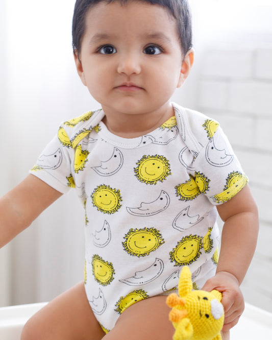 SUN & MOON - Half Sleeves - Organic Baby Romper - Set of 3